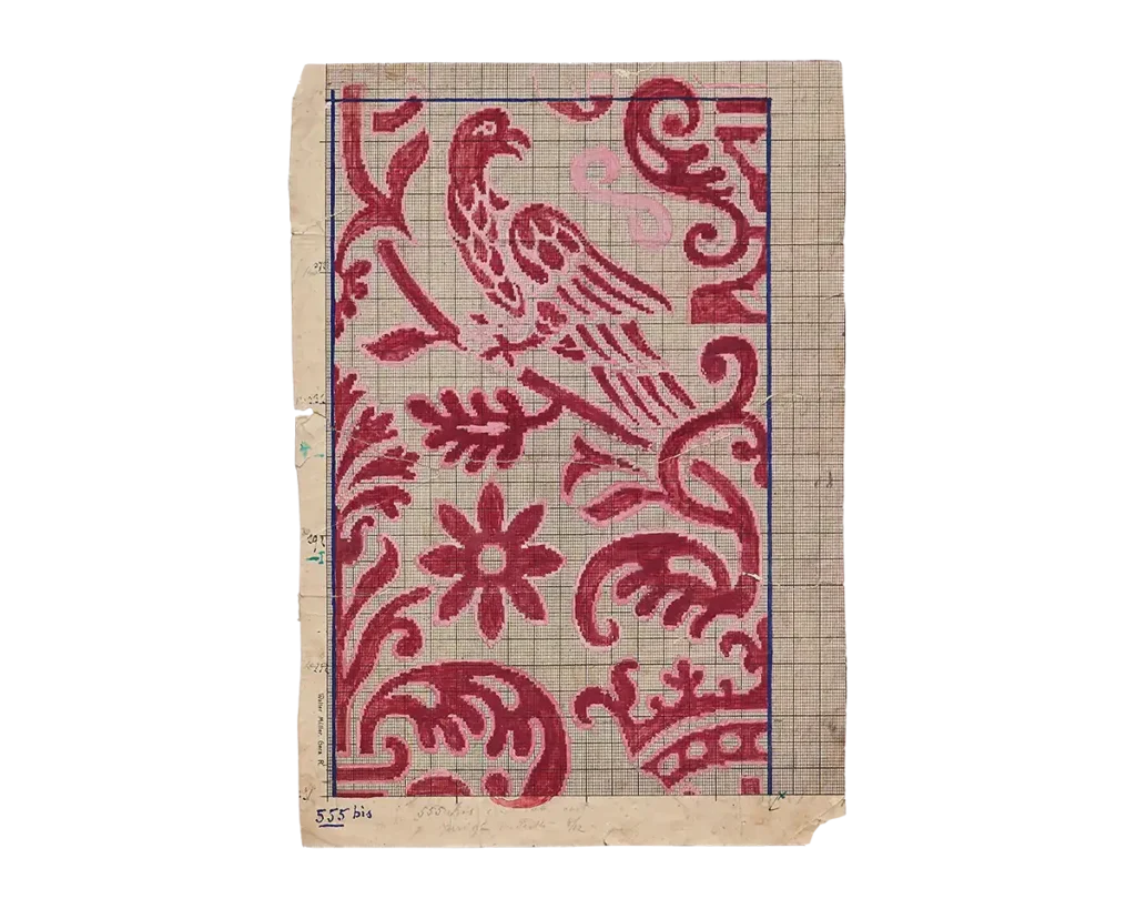 Tra la documentazione tecnica conservata dalla tessitura Bevilacqua, particolarmente suggestiva è sicuramente la raccolta delle messe in carta e dei bozzetti.