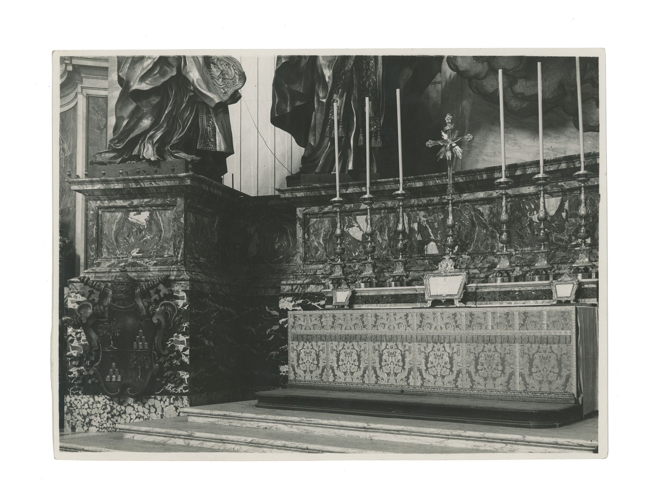 Fotografia del velluto soprarizzo “Fioroni”, utilizzato per adornare l’altare della chiesa di Roma