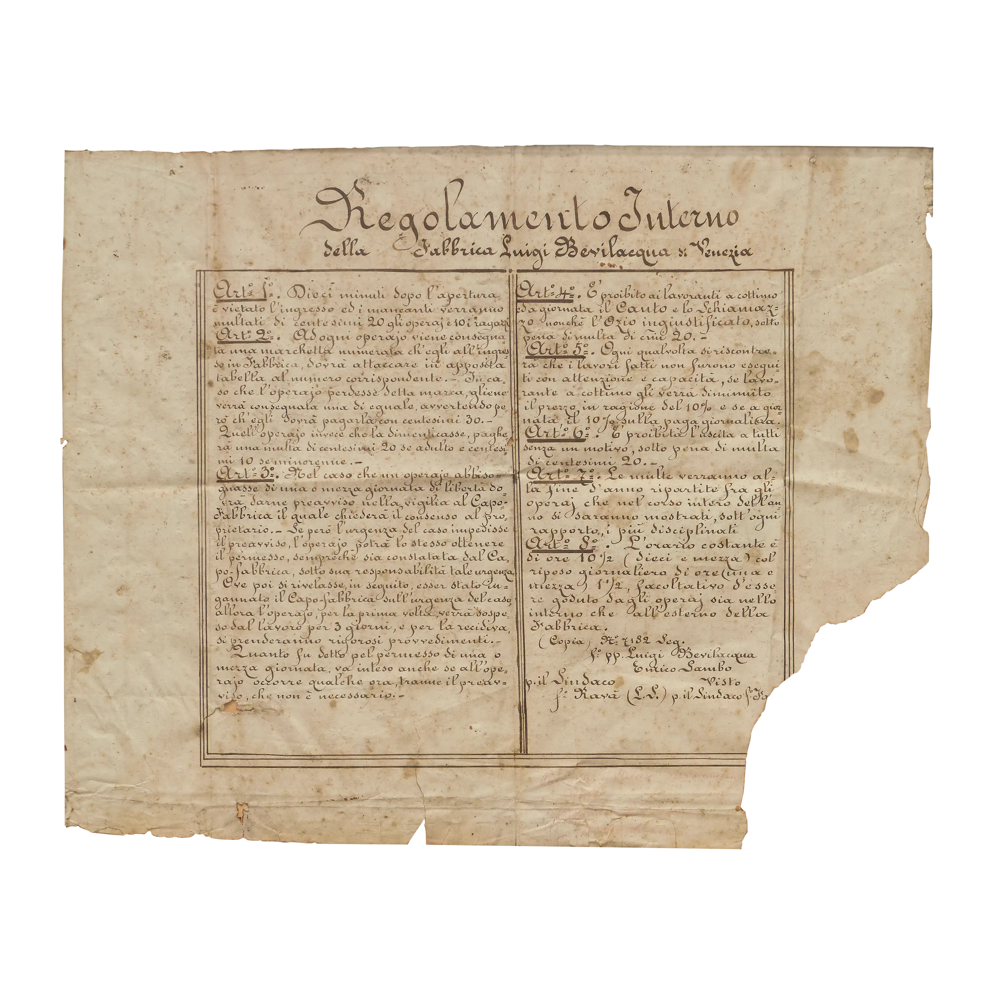 Internal Regulations of the Luigi Bevilacqua Factory of Venice
