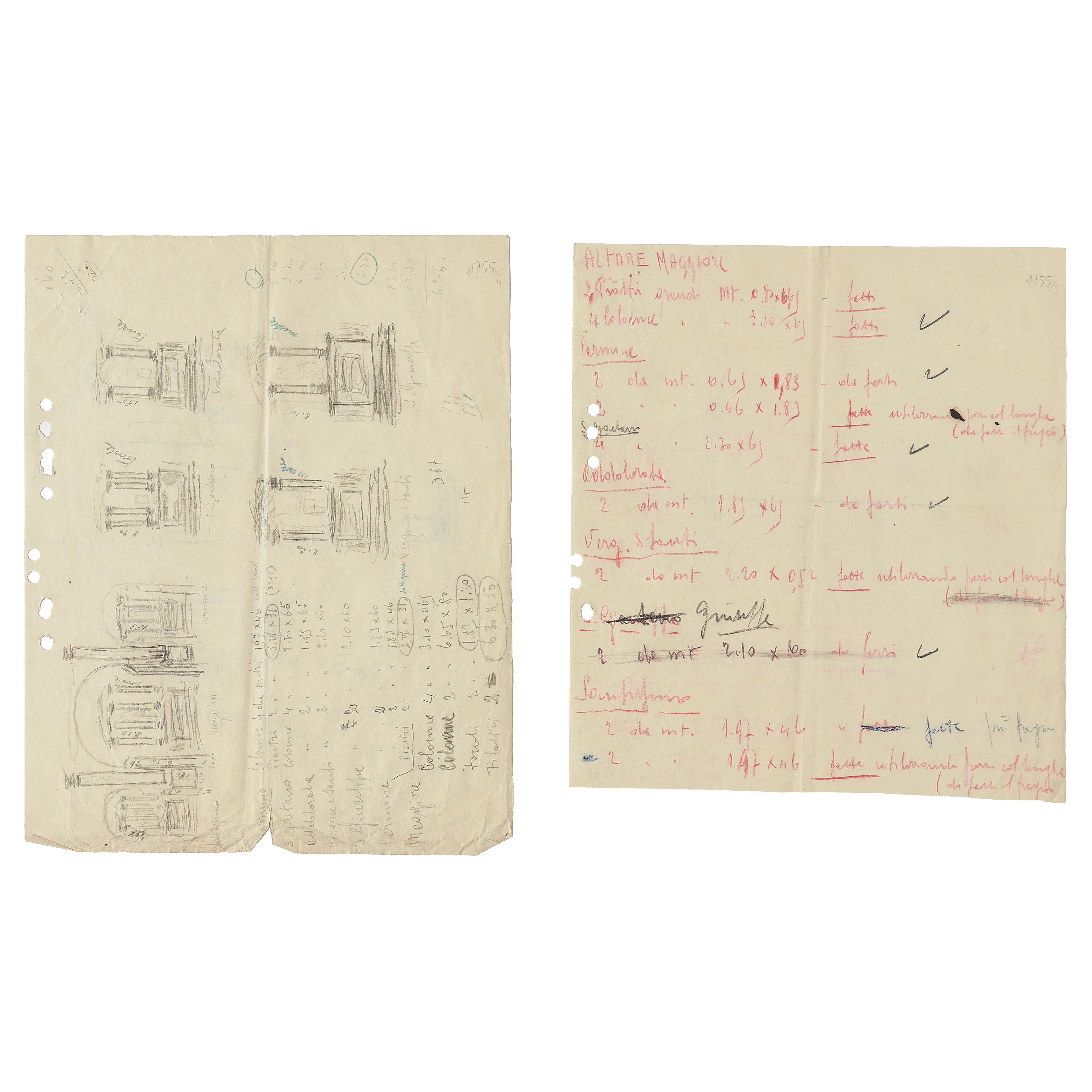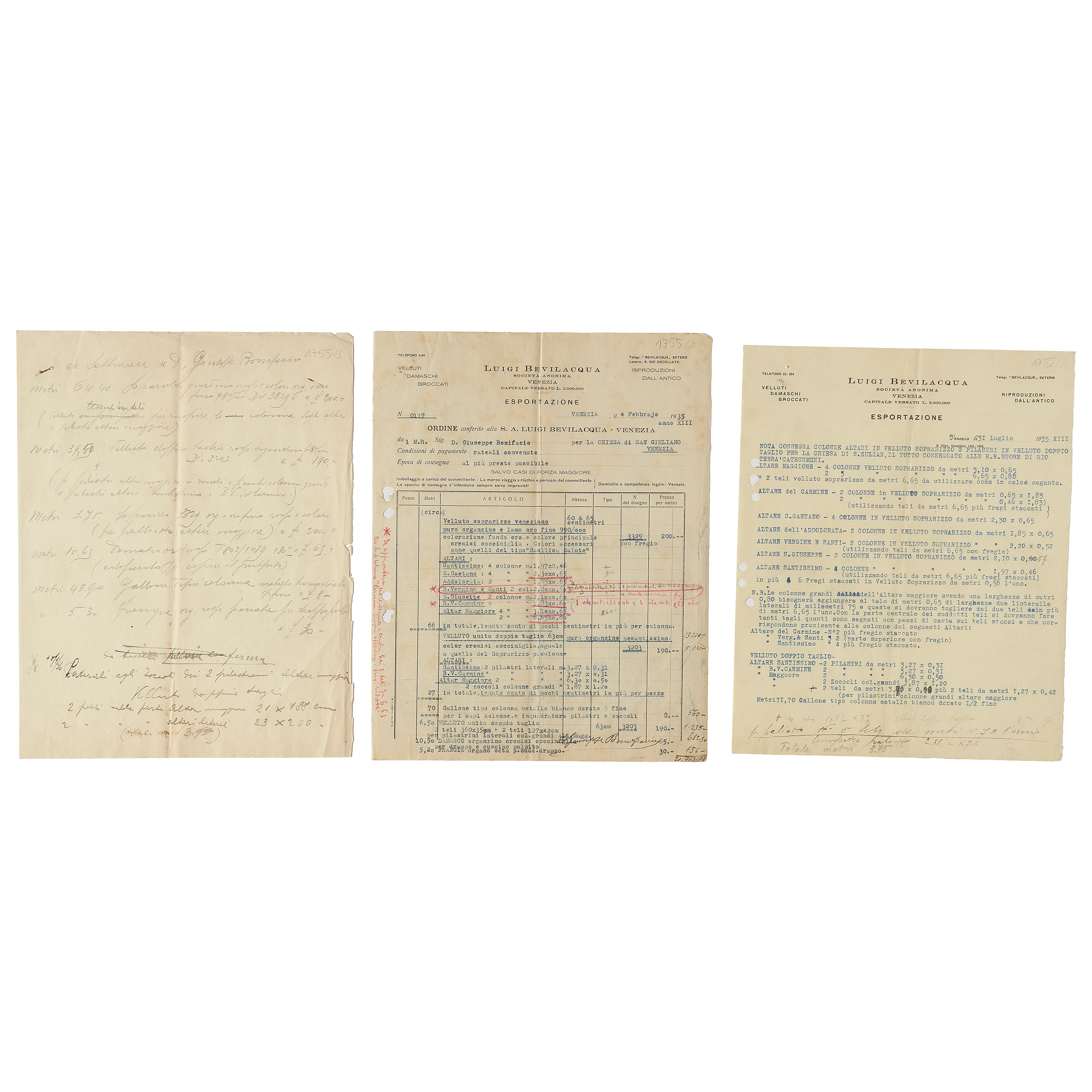 Copy of the order of Don Giuseppe Bonifacio for the velvets to adorn the altars of the church of San Giuliano in Venice. The orders are accompanied by sketches and drawings for the creation and placement of the fabrics