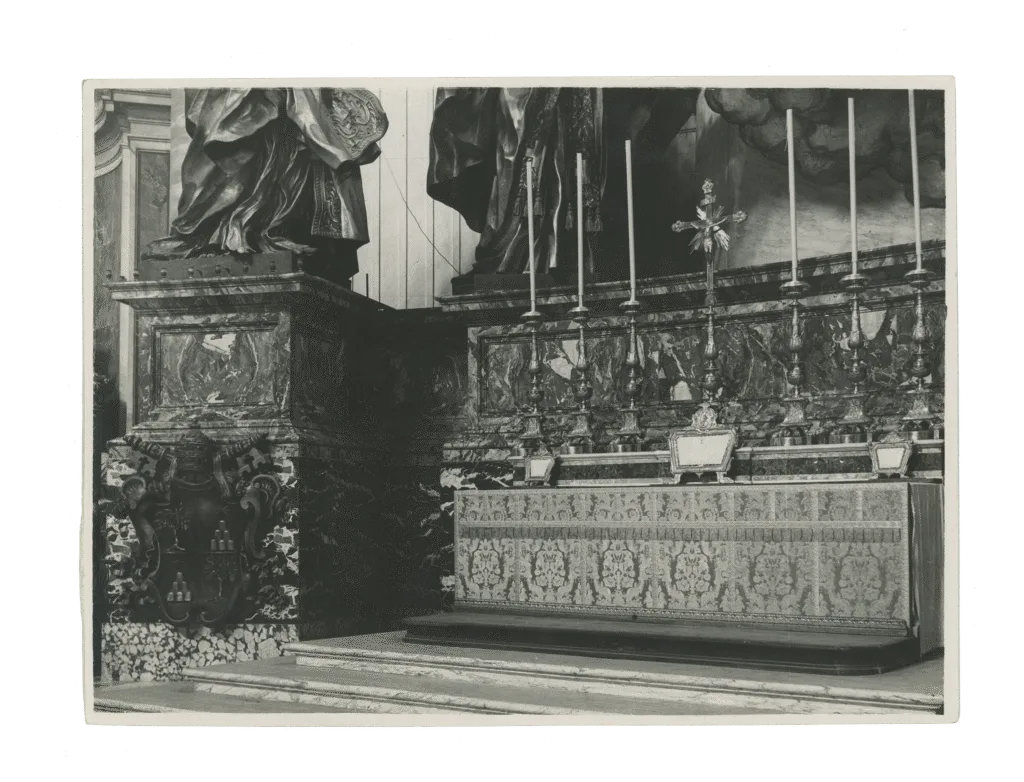 Photograph of the "Fioroni" soprarizzo velvet, used to adorn the altar of the church in Rome