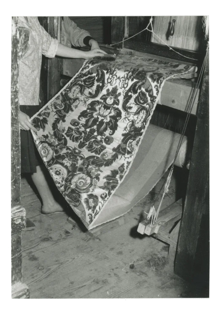 Photograph of a weaver working on the "Fioroni" soprarizzo velvet