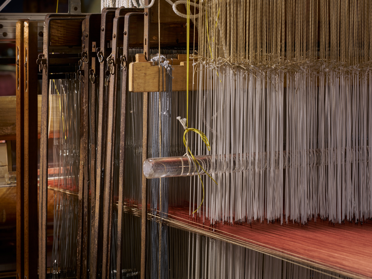 The hand-operated Jacquard loom, although requiring careful and slow preparation, allows great creative freedom in the creation of complex patterns. It is a high-precision artisan technique, whose custody is entirely entrusted to the workers who take care of the production process.