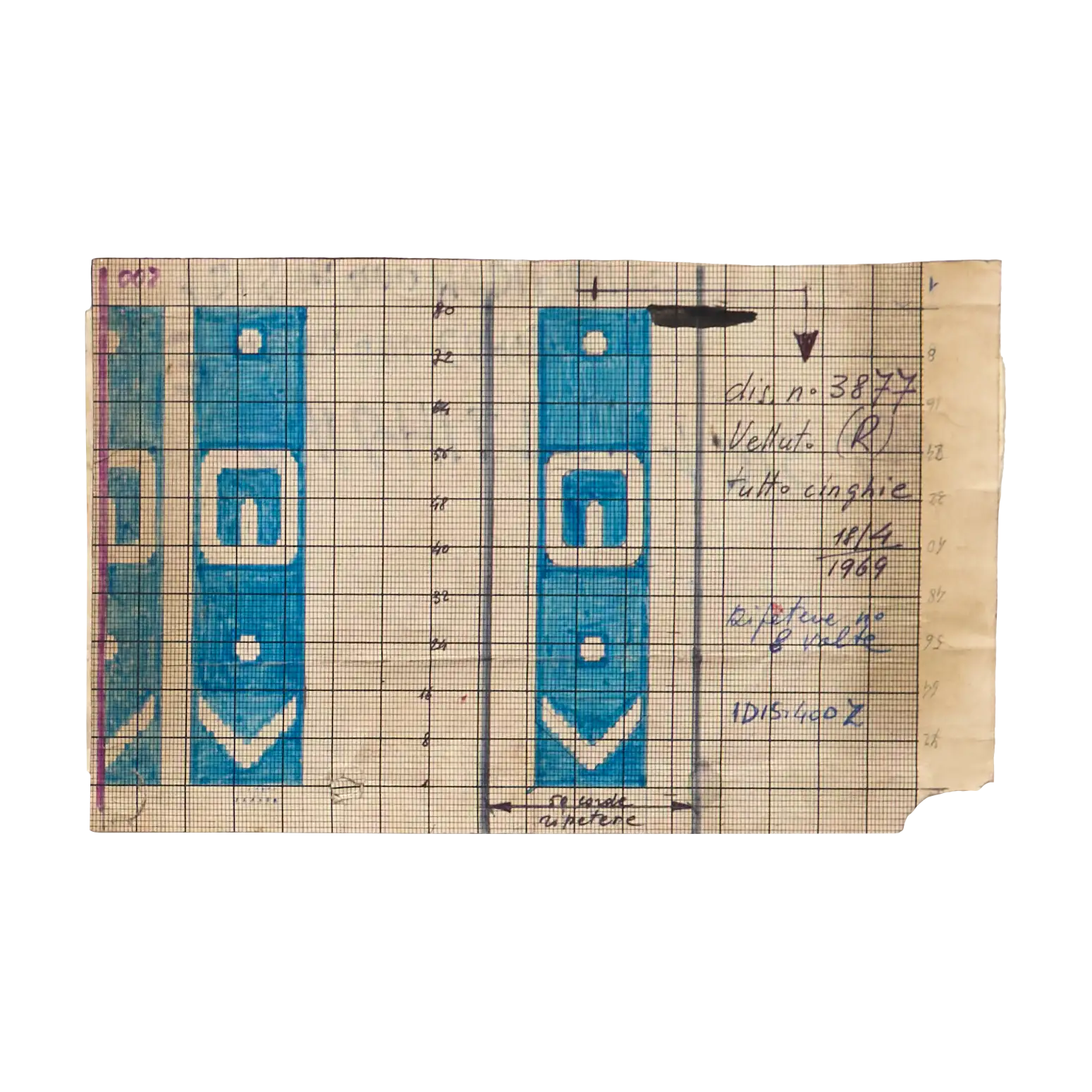 The letter “R” present both in the historical name of this velvet and on the weaving drafts of the design allows us to identify the origin of the model in the collaboration between Tessitura Bevilacqua and the designer Roberta di Camerino.
