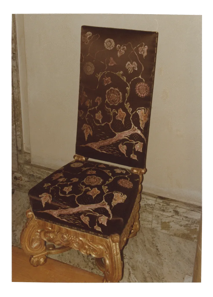 Fotografia di una sedia rivestita dal broccato "Edera" disegnato da Maja Sjöstrom