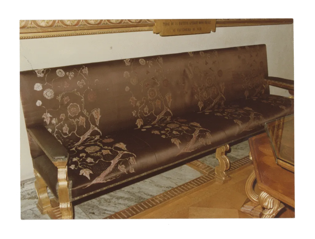 Fotografia di una seduta rivestita dal broccato "Edera" disegnato da Maja Sjöstrom